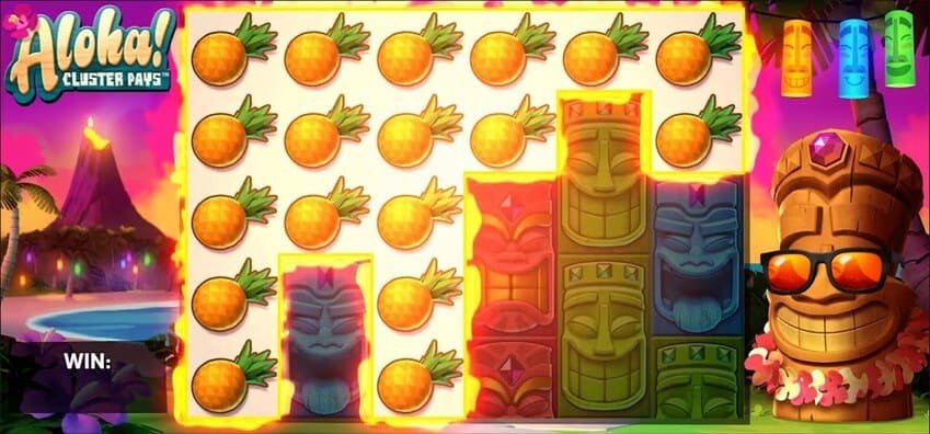 This mechanic was introduced and popularized by NetEnt in March 2016 with the release of Aloha! Cluster Pays. It was this Hawaiian 6×5 slot that first offered a system where payouts are formed when nine or more identical symbols are combined.