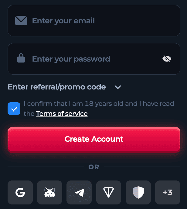 Tap a “Sign Up” button and create your account to become a Betfurian. You can choose one of these registration methods: