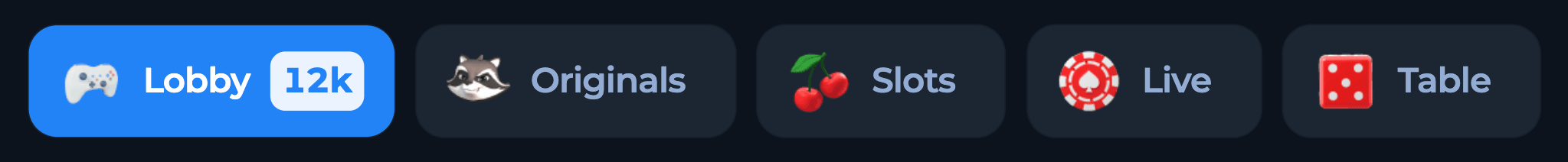 | Table | Blackjack, Poker, Roulette, Baccarat, etc. |
